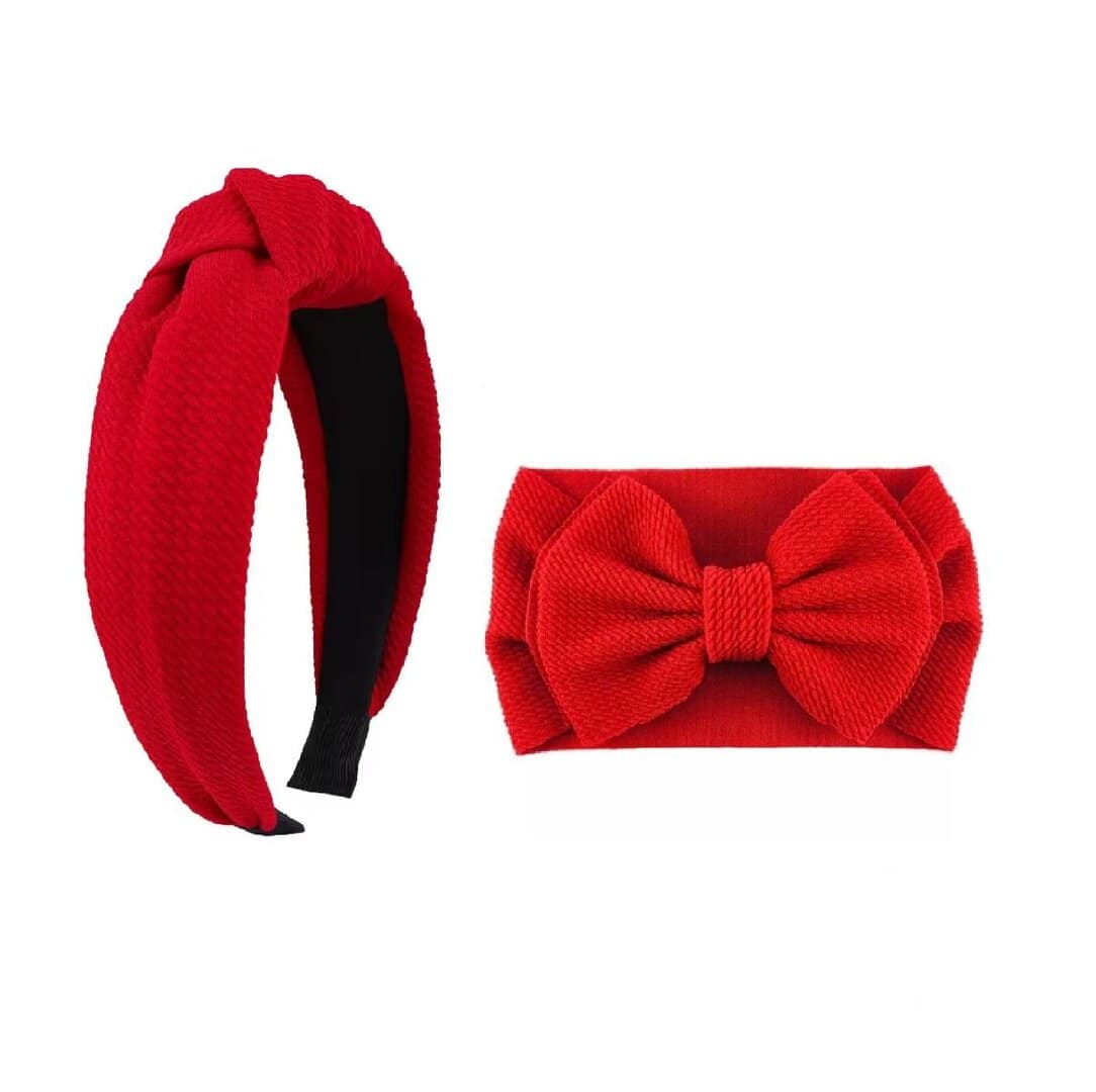 Σετ Μαμά-Κόρη Γυναικεία Στέκα με βρεφική-παιδική κορδέλα με φιόγκο 6 inches 0-8 χρονών – Red