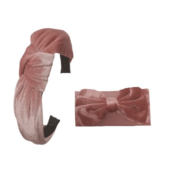Σετ Μαμά-Κόρη Βελούδινη Γυναικεία Στέκα με βρεφική-παιδική κορδέλα 0-8 χρονών – Dirty Pink