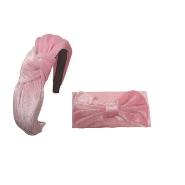 Σετ Μαμά-Κόρη Βελούδινη Γυναικεία Στέκα με βρεφική-παιδική κορδέλα 0-8 χρονών – Pink