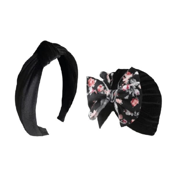 Σετ Μαμά – Κόρη βελούδινη στέκα και τουρμπανάκι μαλλιών – Μαύρο χρώμα