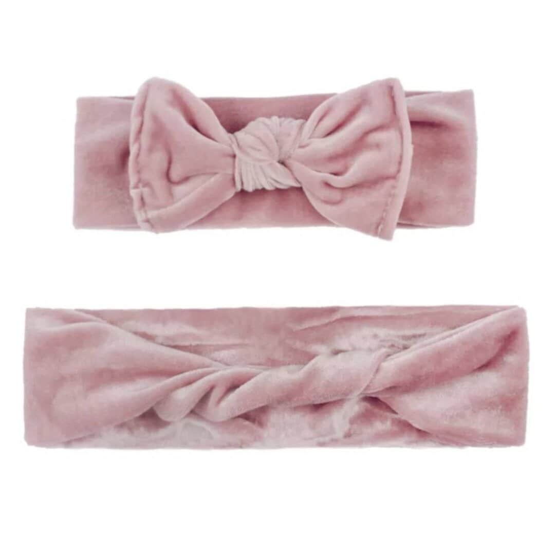 Σετ Μαμά- Κόρη Βελούδινη Μαλακή κορδέλα μαλλιών 0-2 χρονών – Powder Pink