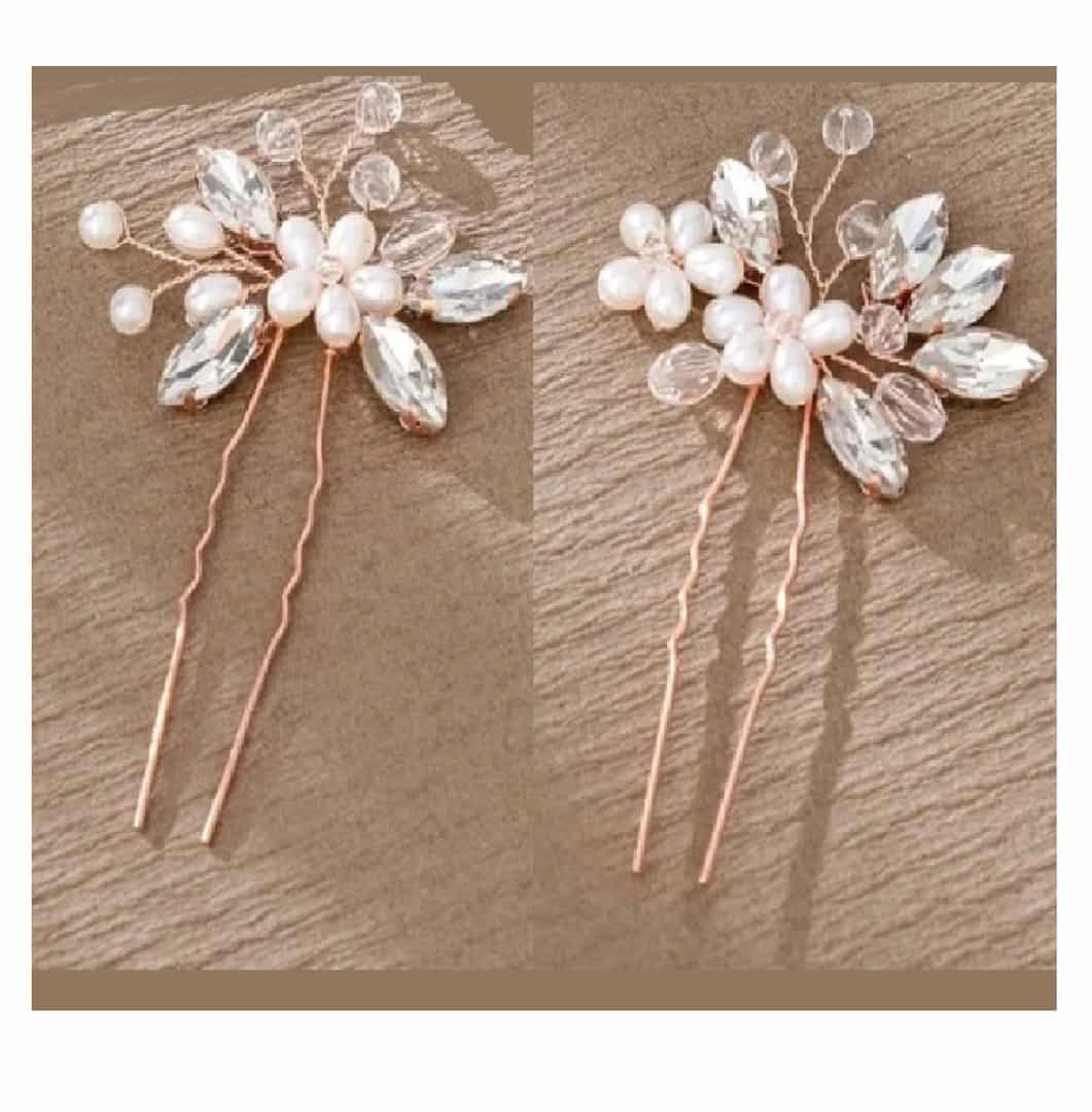 Σετ Νυφική φουρκέτα 2 τμχ με κρύσταλλα flowers σε Rose gold χρώμα