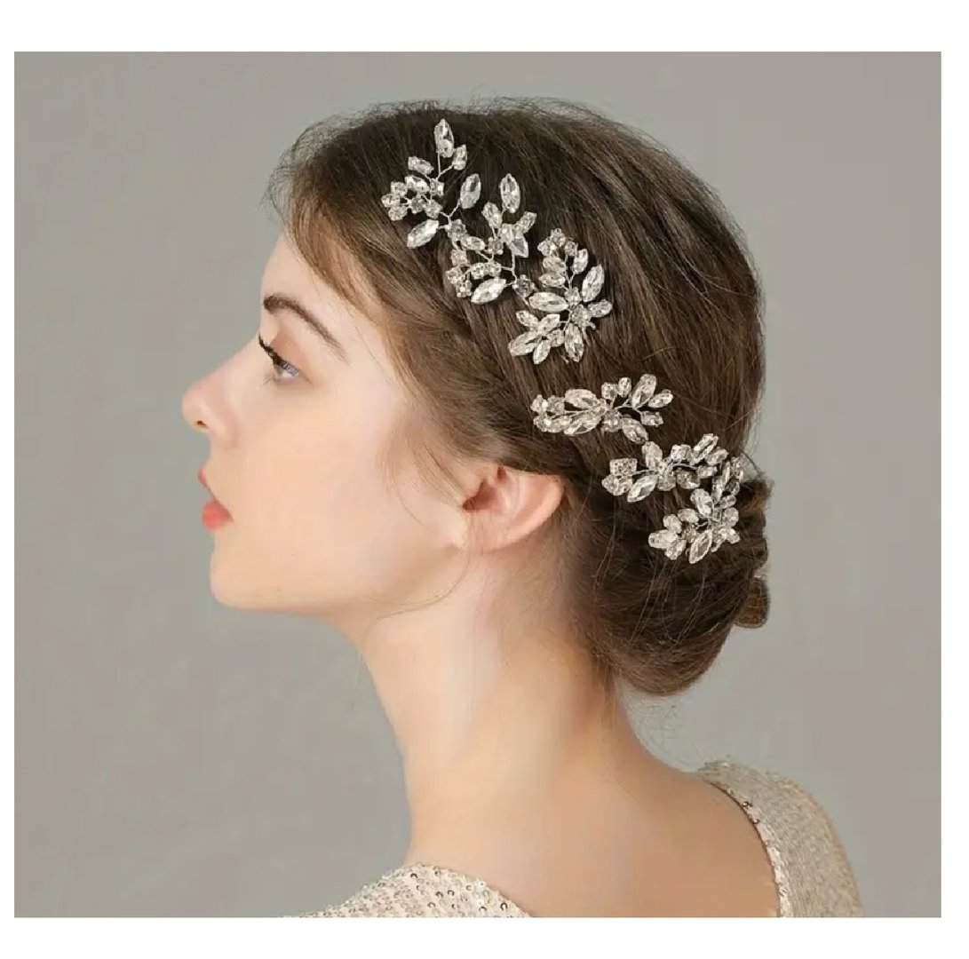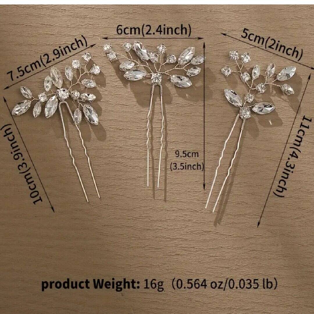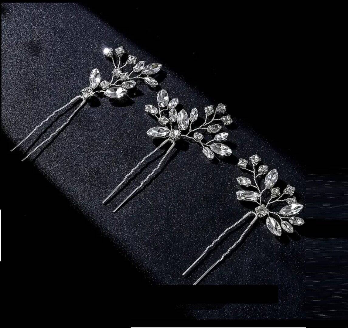 Εντυπωσιακό σετ 3 τμχ νυφικές φουρκέτες με κρυσταλλάκια σε ασημί χρώμα
