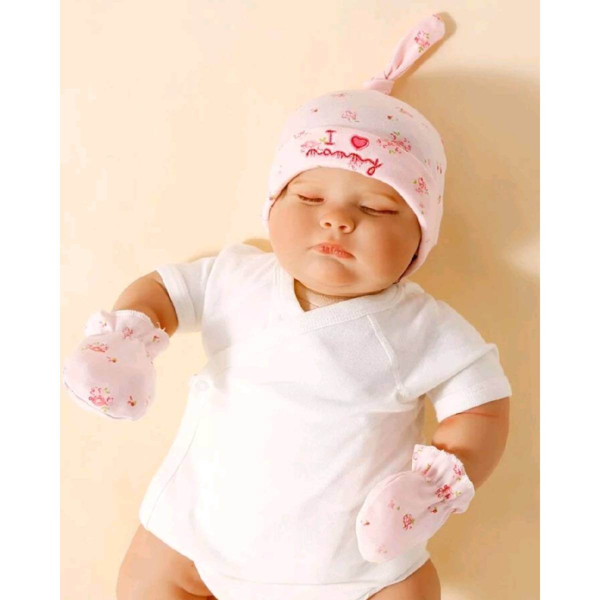 Σετ Βρεφικό Μαλακό τουρμπάνι με γάντια 0-3 μηνών Pink