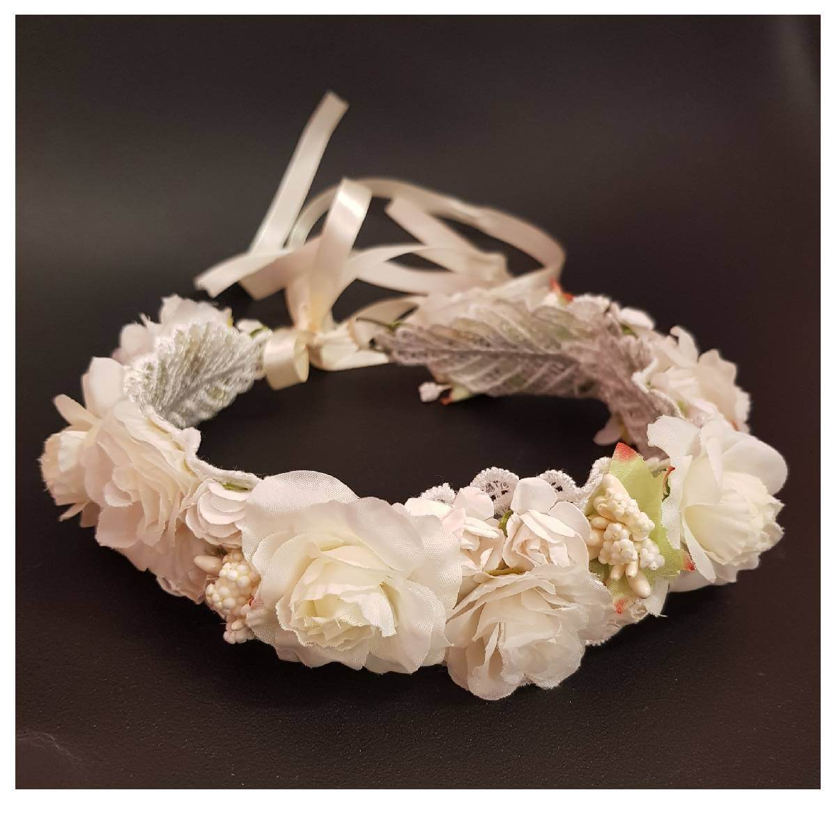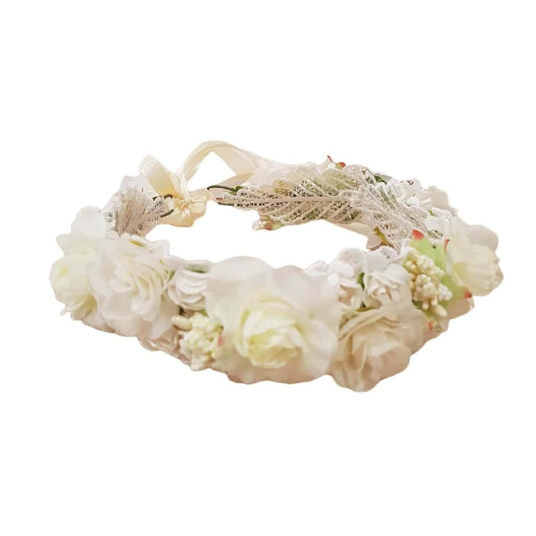 Στεφάνι λουλουδιών Λευκό-ιβουάρ για βάφτιση , παρανυφάκι, νύφη