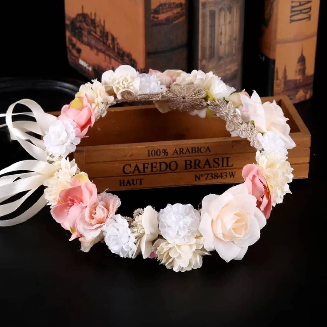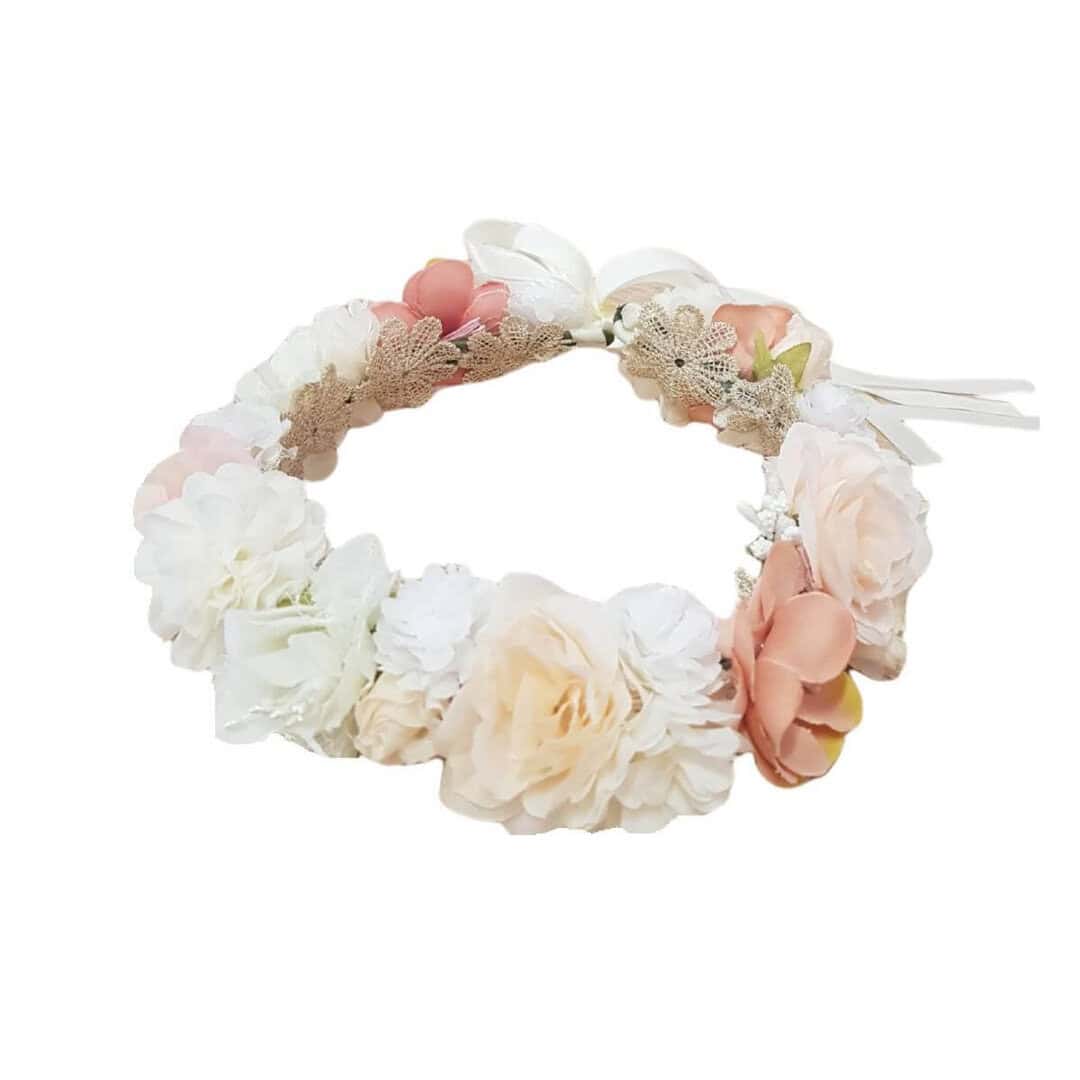 Στεφάνι λουλουδιών Λευκό-Ροζ για βάφτιση , παρανυφάκι, νύφη