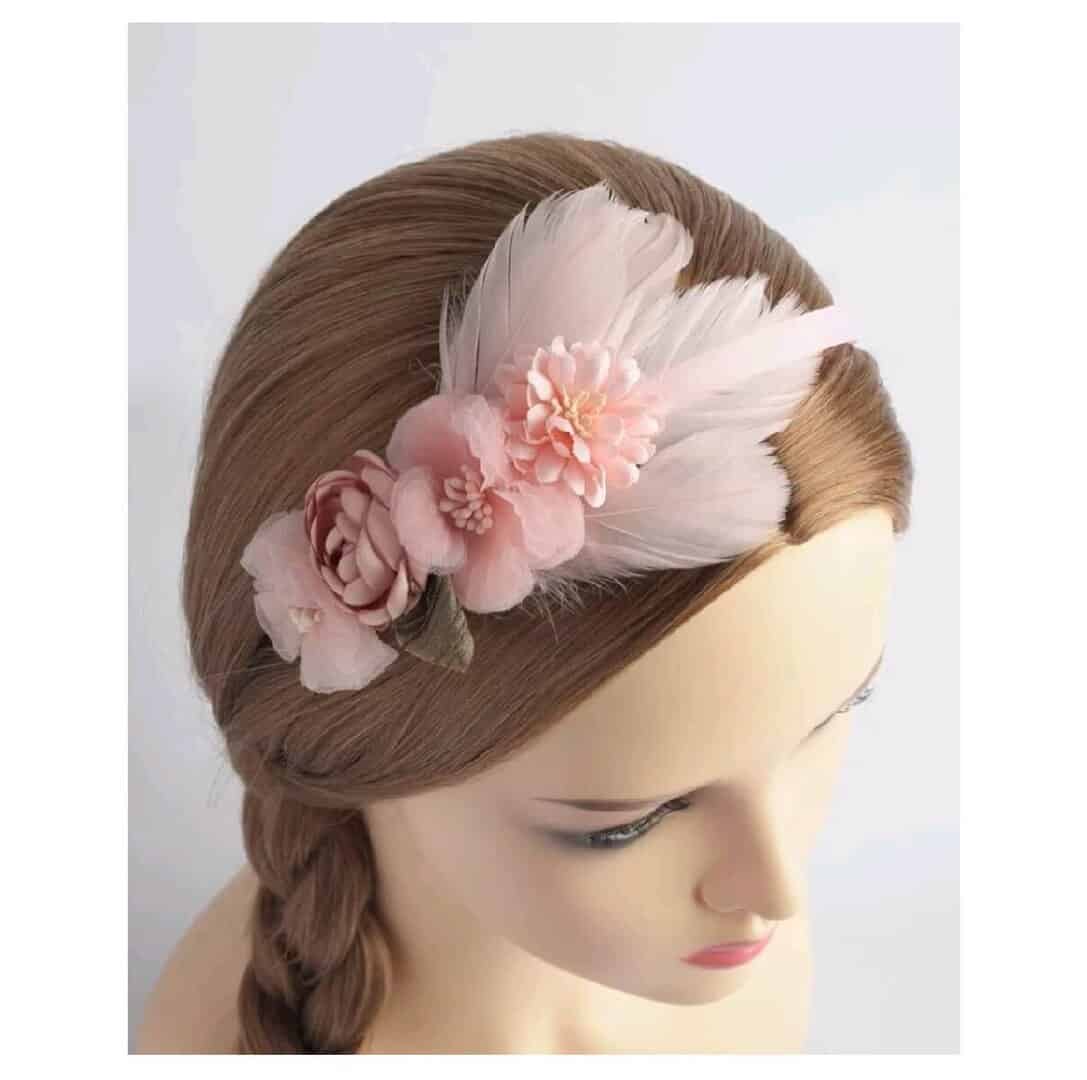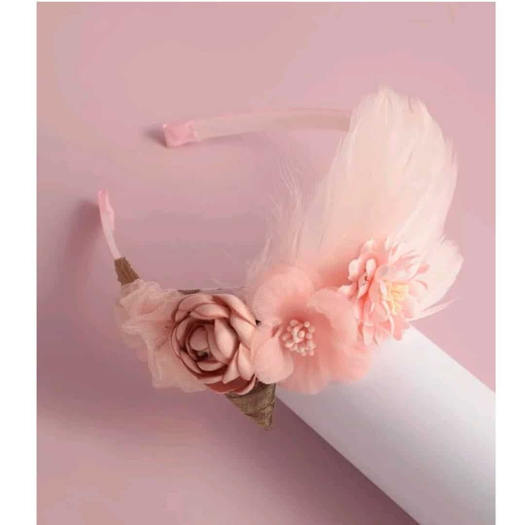 Στέκα Παιδική-βρεφική Peach με λουλουδάκια και πούπουλα Βάφτισης- παρανυφάκι